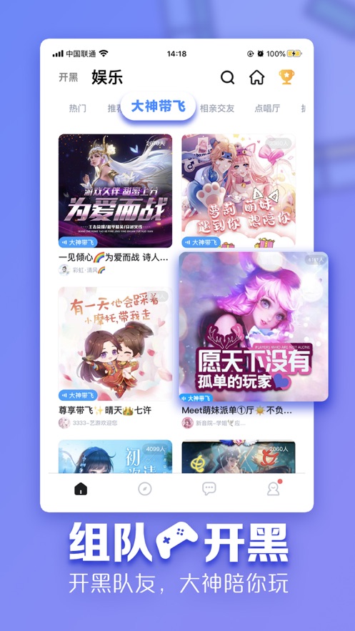 汇聚各大热门手游玩家,根据你的游戏类型和风格,分分钟秒配到声音好听、技术牛逼的大神小姐姐小哥哥们一起开黑超神