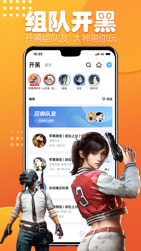 专业级别的语音交流,超高音质无损耗,让你清清楚楚听清队友每一个字,游戏背景音也能完美的听到,并不会和开黑队友的声音重叠。还有开黑社区,一键给你匹配你想要的队友,不再为苦苦寻找开黑队友而烦恼。
