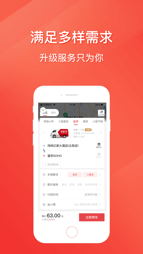 快狗打车官方版一款专业的用车服务软件,专业的司机配送,快狗打车官方主要用于同城货运,全城面包车、货车任您选择,100%安全送达,,并且快狗打车官方版为大品牌,安全有保障。