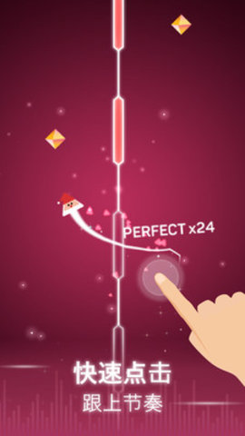 感受音乐的节奏点,轻击屏幕操作光点的移动轨迹!