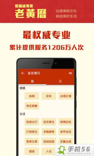中华老黄历通胜日历手机软件哪里有下载?很多人喜欢用,今天手机56小编给小伙伴们带来一款中华老黄历通胜APP下载,中华老黄历通胜日历万年历安卓最新版下载,一款非常专业的老黄历日历万年历手机应用软件,赶紧来试试吧!"/>
