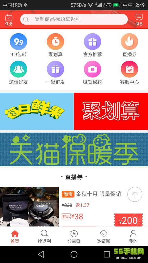 嗨搜赚,一款非常不错的手机购物软件,这里为用户准备了海量优质的商品资源,每天还有各类优惠、抢购活动等待你的参与,更为重要的是购物还有返利哦,喜爱购物的你一定不要错过!