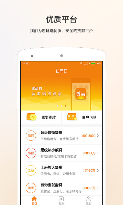 钱而已贷款app是一款很好用的手机借贷产品,专业的信贷平台为你选择最为合适的贷款方案。极速放款体验,喜欢的朋友赶紧下载体验吧。