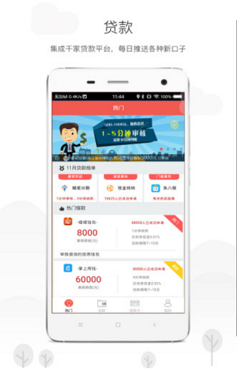 1.覆盖全面:集成千家贷款平台,每日推送各种新口子,包含消费购物贷款、微小企业借贷、汽车消费分期贷款、购房装修贷款、毕业旅行急用钱。