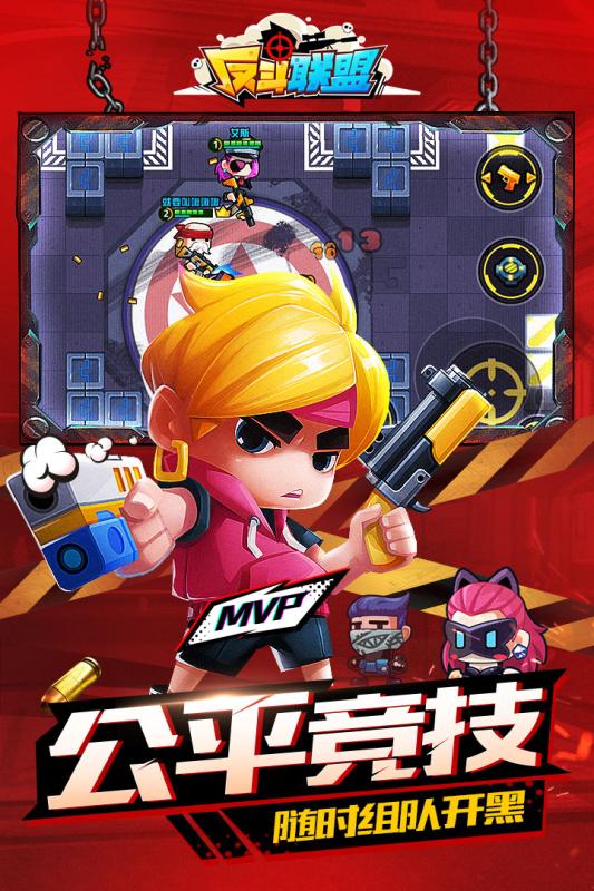 反斗联盟是一款竞技射击良心手游。快速匹配,实时对战,随时随地想开黑就开黑。各种激萌角色供你选择,众多武器随意搭配,加上各种酷炫特技,闪现,护盾,扔手雷,说超神咱就能超神!多种战斗模式,总有一款适合你!更有全新的社交模式让你游戏交友两不误,线上线下全兼顾~