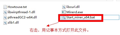 2、配置矿池,将解压后的工具目录下的Start_miner_x64.bat用记事本打开,
