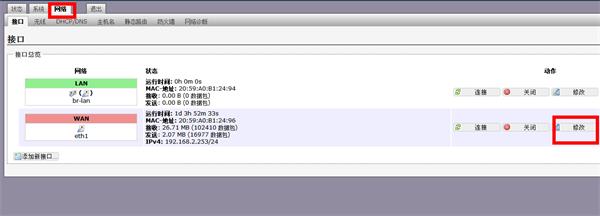 ② 点击【网络】标签,进入网路管理界面,配置 ip 信息。