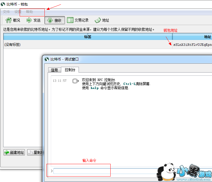 点 帮助 -> 调试窗口 -> 控制台 进入 钱包控制台界面。