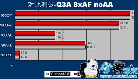 Quake3测试,在四种不同的状态下,我们对催化剂3.8和3.9进行对比。