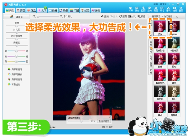第三步:调节好色调后,最后应用一下“柔光”特效,就大功告成啦!