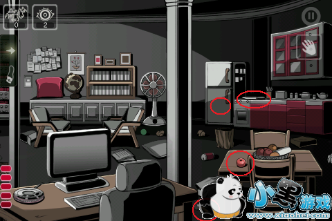 2.到最右边厨房,红色的橱柜有两个可以打开,里面分别是锤子和金钥匙。(金钥匙因为只能拿一次,所以有些关卡我已经记不清了,这一关应该是在那个橱柜的抽屉里吧。)