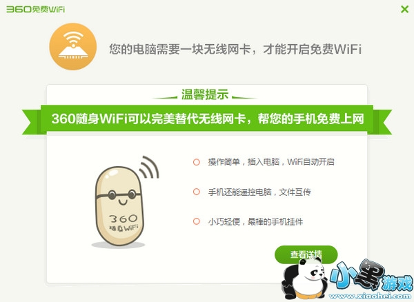 注意:上述说明是针对笔记本的,如果是台式机想实现无线WiFi,还需配备一个随身wifi哦