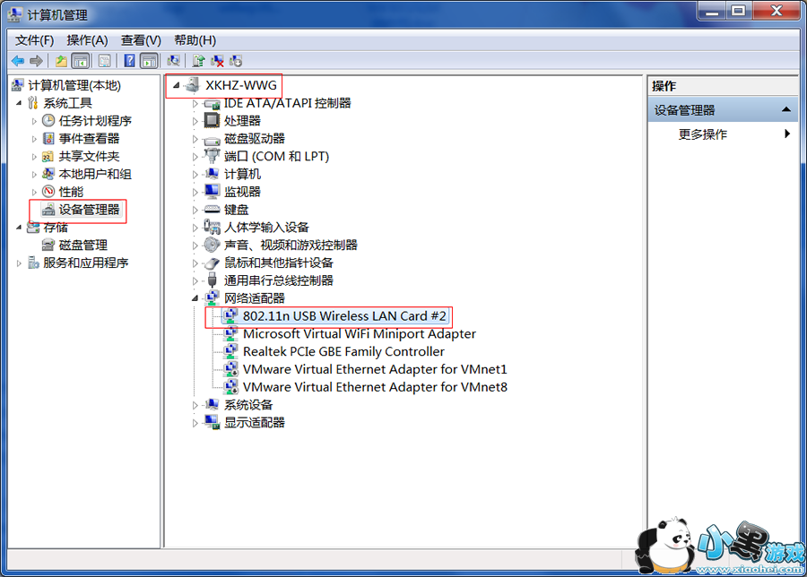计算机—右击——管理—设备管理器—网络适配器—选中你的无线网卡(wireless LAN)右击卸载,如图“卸载无线网卡”(不要打勾)—直接确定—鼠标选中计算机名(XKHZ-WWG)扫描检测硬件改动如图“扫描硬件”需要耐心等待几分钟系统会自动安装无线网卡,安装完成之后就可以打开软件正常使用软件。
