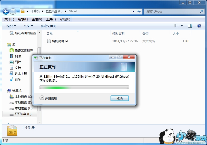 第一步、下载GHOST-win7系统到你的电脑中,一般下载的都是iso文件,请解压后提取win7.gho文件,并复制此文件到U盘的ghost文件下