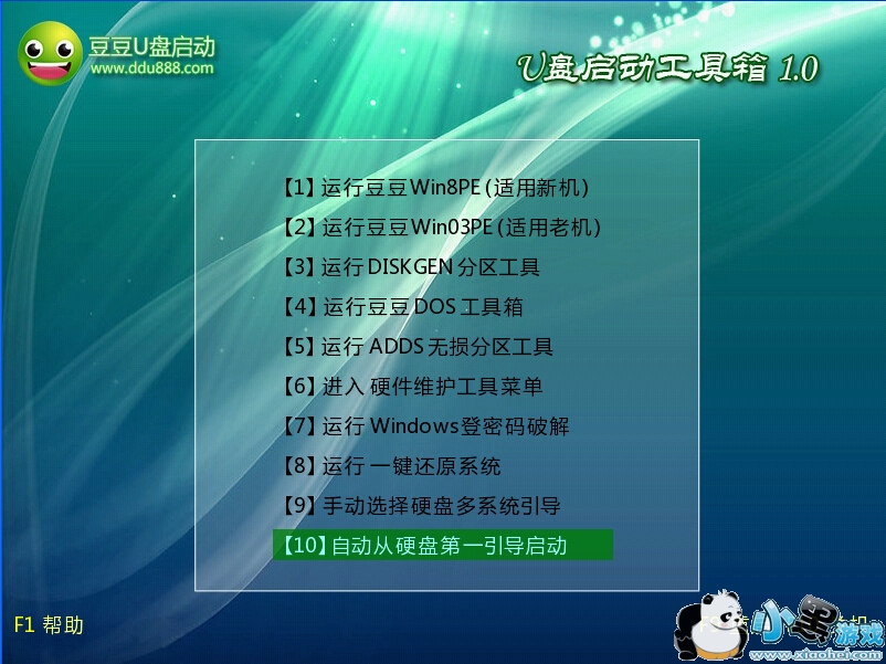 第三步、上述设置好后,会自动从U盘启动,将出现如下豆豆U盘启动菜单画面: