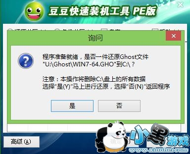 等恢复完成后重启计算机,将进入系统自动重装过程,只需等待即可。至此,用豆豆u盘安装操作系统完毕!你可以忘掉没有光驱无法安装操作系统的烦恼了。