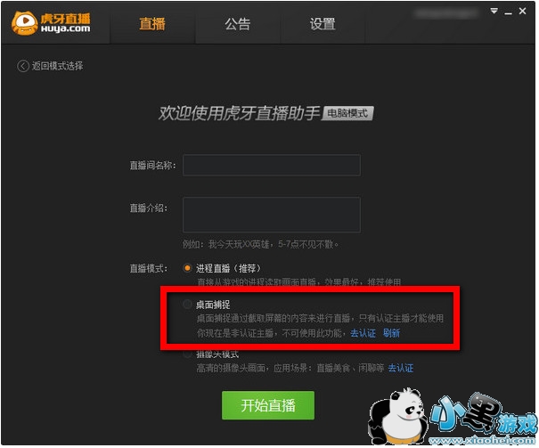 第一步:在直播模式中选择“桌面捕捉”,点击开始直播