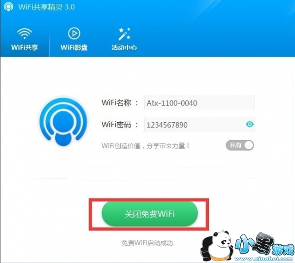 3、在WiFi共享精灵3.0版关闭状态下修改密码成功后,启动WiFi共享精灵