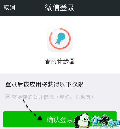 4、随后请点击“确认登录”按钮,即可用微信连接春雨计步器应用,如图所示
