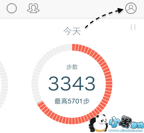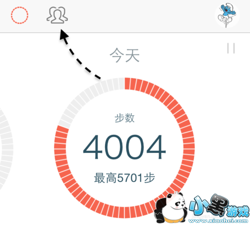 2、当打开春雨计步器以后,它会自动在后台记录我们的运动步数。在下图中可以看到当天所完成的一个频数统计情况,是以一个圆环来显示。初次使用时建议登录,点击右上角的“头像”图标。