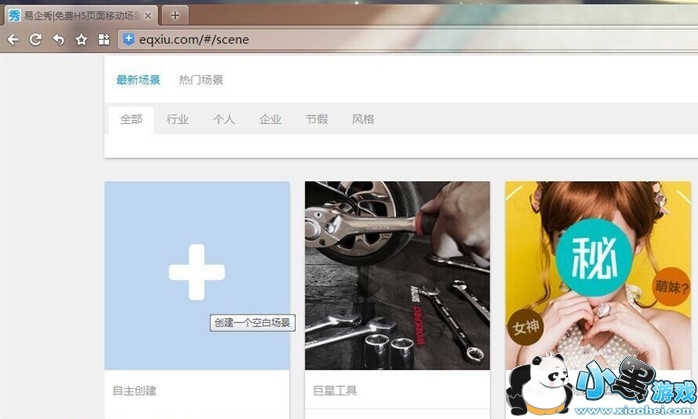 默认进入“我的场景”,点击创建场景,进入场景库。如果你喜欢秀粉们分享的场景,也可以直接选择编辑。今天我们先使用“自主创建”来创建一个新的空白场景。