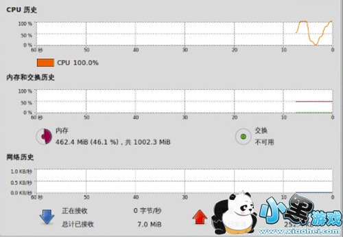 第九步:下图为系统监视器窗口,在资源分类下,可以看到CPU、内存与网络的使用情况。
