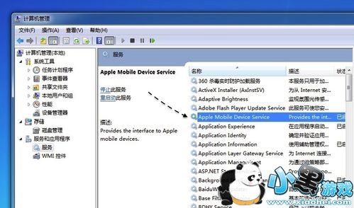 3、随后请在服务列表中找到 Apple Mobile Device 服务,双击打开它,如图所示