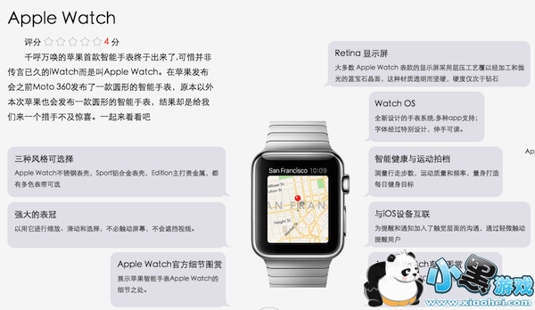 Apple Watch的设计并没有太多的惊艳感觉,与传统腕表相似,不过在机身的侧面设计了一个旋钮和一个按键,受限于屏幕尺寸,Apple Watch将很多触摸操作搬到了侧面的旋转钮上,使用中可以通过旋转旋钮完成缩放、上下滑动等操作。而苹果为了照顾佩戴者的喜好,推出了一大一小两种屏幕尺寸的Apple Watch。