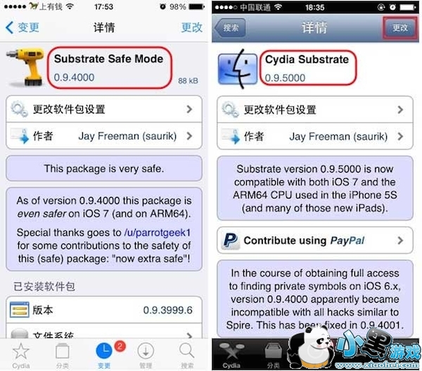 请确定Cydia substrate为0.9.500版本,Substrate safe mode为0.9.4000版本,如果不是,请前往cydia更新。