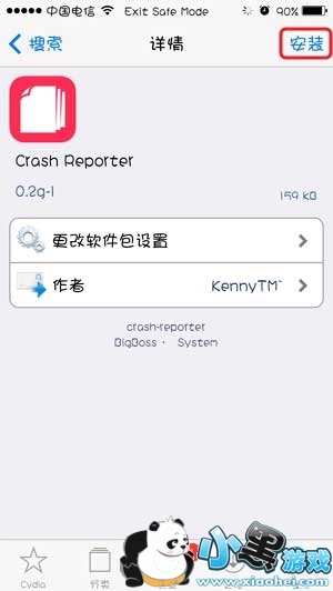 4)依旧无效,请在cydia搜索安装crash reporter,然后在安全模式下点击桌面上的【回报错误】,点击“SpringBoard”,查看最新的一次崩溃日志,找到引起崩溃的插件将其卸载恢复。