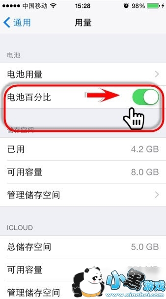 第2步:点击电池百分比右方的滑块并向右拖动,即可开启该项显示功能。