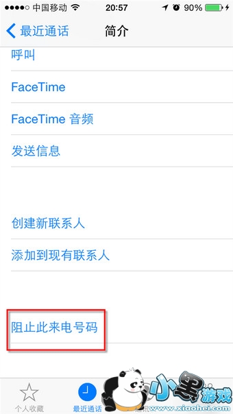 注:所有的黑名单电话均可在“设置-电话”界面里点击“黑名单”进入后查看到。