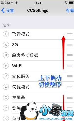 3.对【CCSettings】快捷按钮进行自定义排序,完成后点击【储存】注销手机生效;