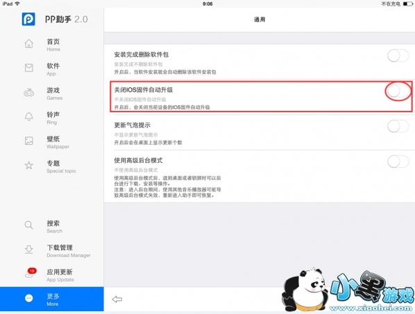 如果在pp助手中设置了还是没用那么就只能通过itunes在电脑上进行升级了。(前提条件是网速要快,并且在更新前切记备份数据以防在更新过程中丢失)具体操作步骤如下:
