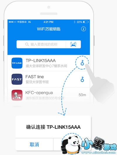 第四步,选取途中带有Wifi钥匙的热点,确认连接。