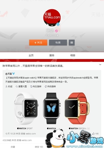 除了官网,天猫也能第一时间购买到AppleWatch,4月10日开始预售,天猫上会有Apple Watch全部型号。
