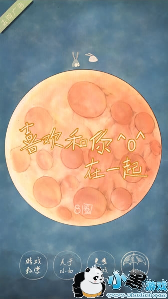 开始后,屏幕左上角的爱心指数就会不断降低。如果玩家能让两只兔子在跳跃中碰面,爱心指数就会回升,一旦这个槽空了,游戏立即结束,最后被记录下来的是玩家绕月亮跳跃的圈数。