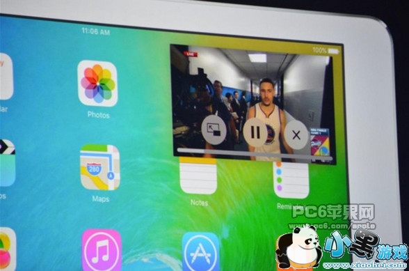 另外,iPad还支持“画中画”功能,可以将正在播放的视频缩放到一角,然后利用屏幕其它空间处理其他的工作。类似于SAMSUNG此前推出的视频多屏播放功能。