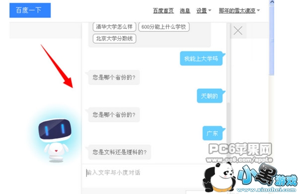 输入后点击发送,有趣的智能机器人百小度就会马上回复我们了,当然毕竟是个机器人,有时也会答非所问的哦。