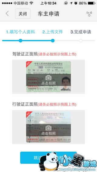 第四步:在这里需要用手机把驾驶证与行驶证的照片上传,如果这两个证没带在身上也不着急,可以事后补上。上传完后点击提交。