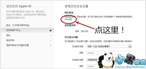 8、开启两步验证,之前设置的安全提示问题则会自动失效;