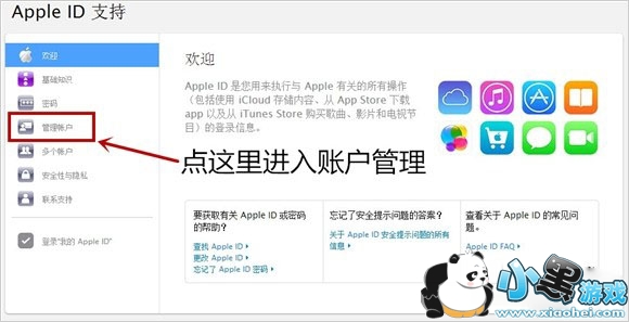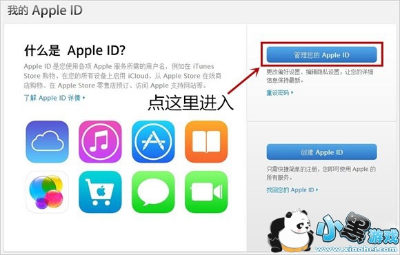 3、进入“管理您的Apple ID”;