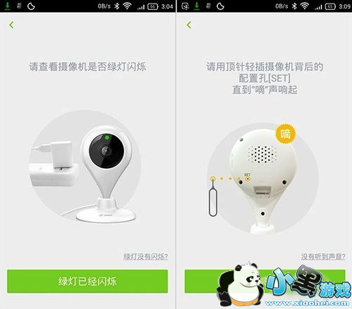 6、接下来是一个比较关键的步骤,需要取下说明书内页夹着的一个小金属顶针,将其插入摄像头背后的“Set”孔中,一直按着直到听到“嘀”的一声响起后,再点击APP最下方的“听到提示音”。