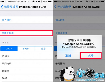2、点选“忽略此网络”,弹出提示框点击确认。