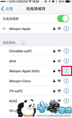 1、依次进入设置>无线局域网,找到需要连接的无线网,点击后方蓝色圈住的“i”帮助图标。