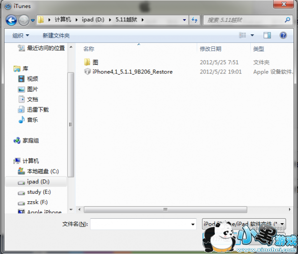 选择刚刚下好的iPhone 4S 5.11固件