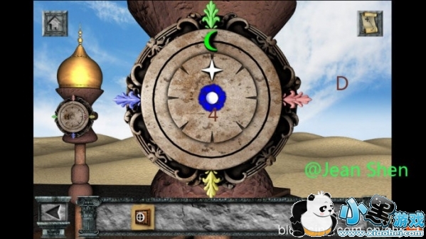 根据石碑上的颜色和红色水晶转盘上的点数,依次点亮三个图形,狮子颜色调整好后点亮他的眼睛就不会变色了;