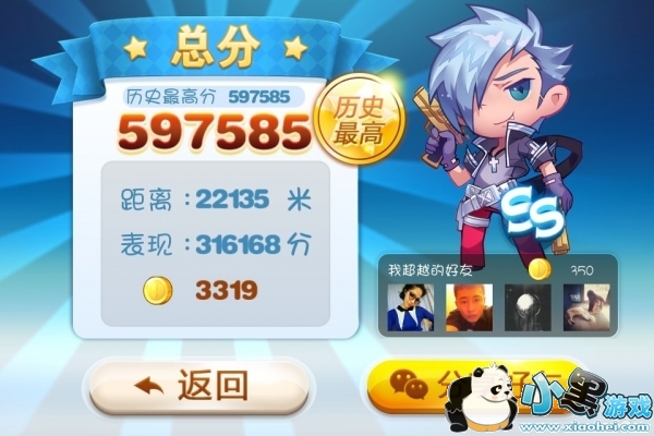 分数是不是很给力 ~ (想刷金币可以一直跑下去,分数最高500多W,但是金币会不停增加的。)