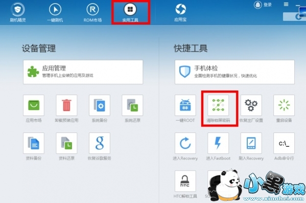例如:刷机精灵中实用工具中的清除密码功能。