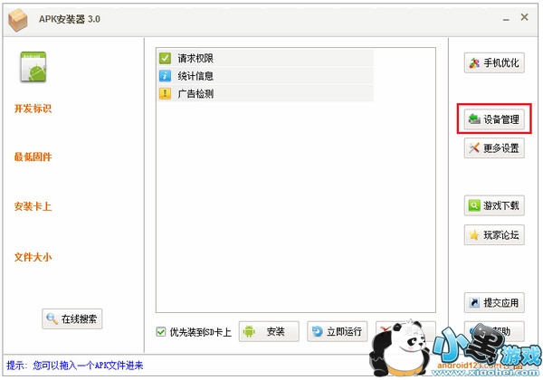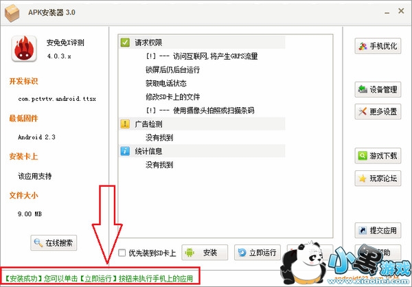 这样双击apk就能直接看到apk信息,然后点apk安装器,中下方的“安装”按钮,就能安装到电视中去啦!